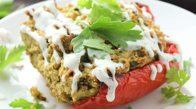 Falafel-Stuffed Peppers With a Coconut Dill Sauce